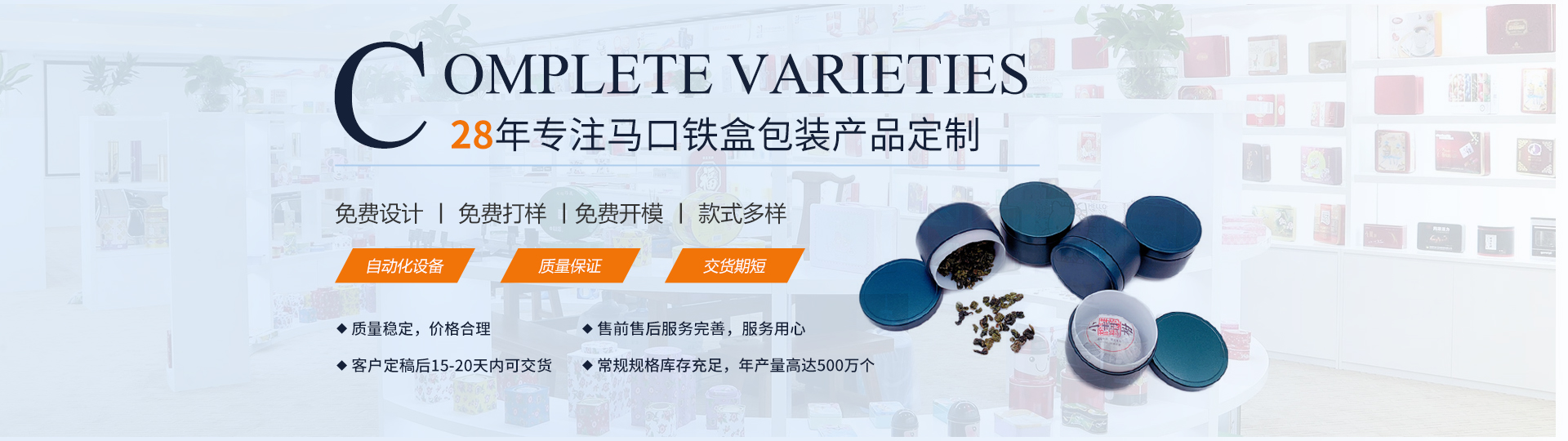 提供一站式馬口鐵盒包裝定制大型企業(yè)集產(chǎn)品開發(fā)、設(shè)計(jì)、印刷、生產(chǎn)、銷售于一體!